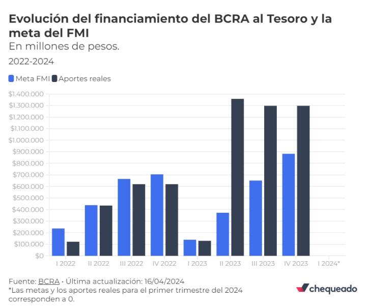 Para el primer trimestre de 2024 se estableció como meta la ausencia de transferencias al Tesoro, algo que la gestión de Milei cumplió.