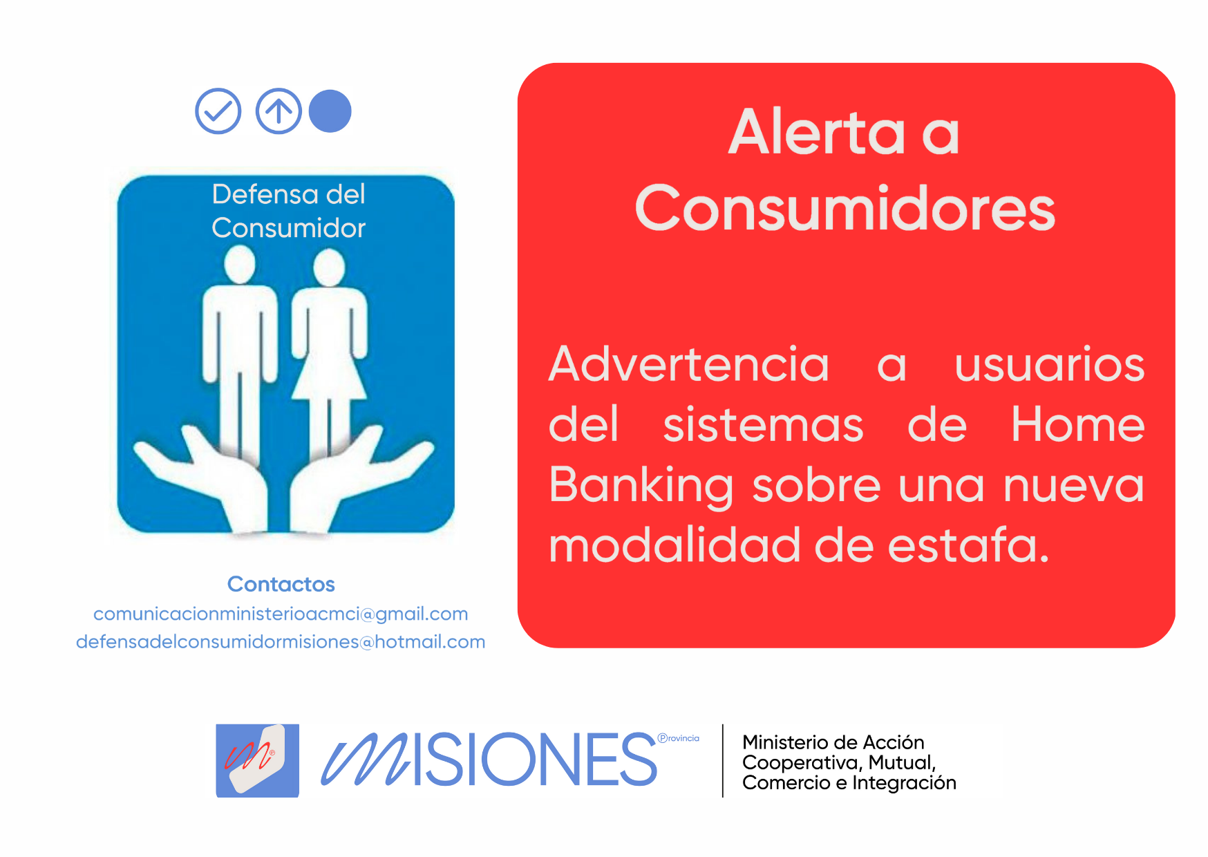 El Ministerio de Acción Cooperativa, Mutual, Comercio e Integración que administra Liliana Rodríguez informa, a través de la Dirección de Comercio Interior – Defensa del Consumidor, que se disparó una alerta para usuarios de sistemas Home Banking sobre  una nueva modalidad para acceder a sus datos y claves bancarias de forma indebida.