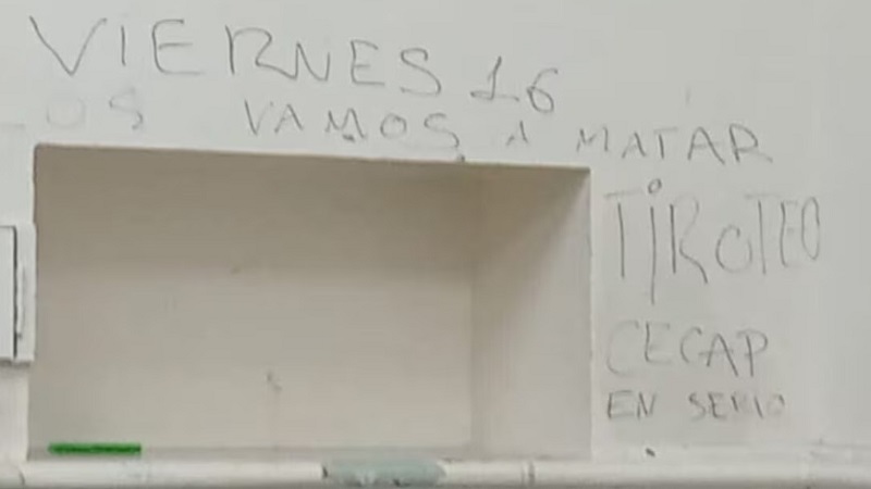 La presidenta del centro de estudiantes del Carlos Pellegrini describió la situación en el establecimiento tras las amenazas recibidas «Ayer por la tarde vimos estos grafitis, hubo mucha alteración en las familias y los estudiantes, sabemos que el tema de la violencia viene muy fuerte, pero personalmente creo que todo lo que ocurrió es una manera de sabotear nuestra movilización en apoyo a los docentes y desviar el foco del abandono a los docentes y del escaso financiamiento».