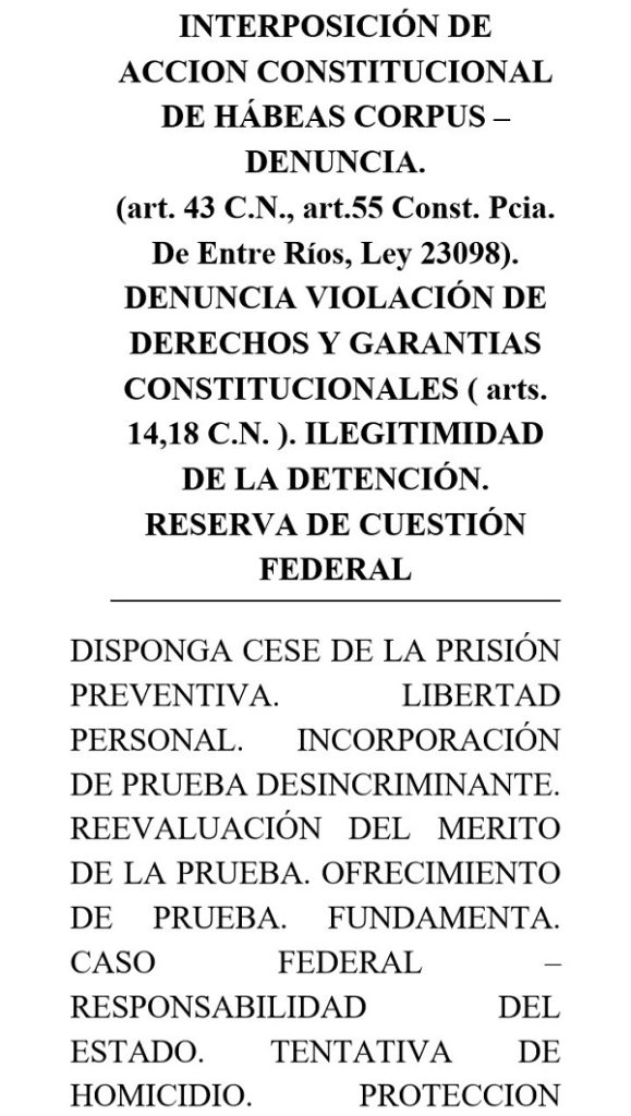 Lo que nos queda es meter toda la causa en un Juzgado Federal y así tratar de llegar a la Corte Suprema de Justicia de la Nación. Y todo esto que le vengo detallando, necesitamos que se sepa a través de los medios alternativos. Que la gente se entere de que no hay ninguna garantía en la justicia de Entre Ríos.