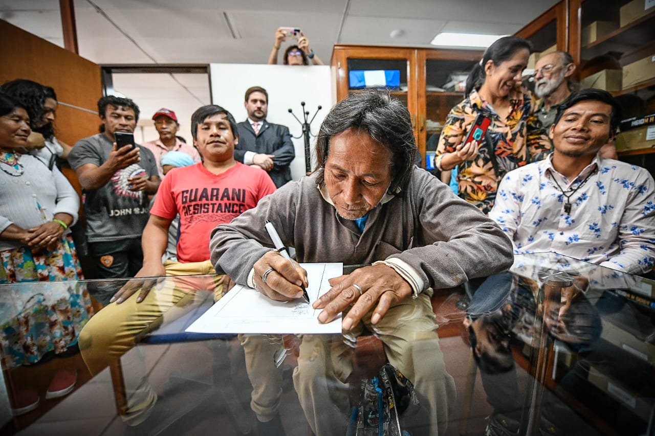 José Catri Duarte, mburuvicha de Ka´aguy Mirĩ Rupa, no pudo contener las lágrimas tras esta victoria: “Este día para mí es muy importante y para todo el Pueblo Mbya Guaraní, llevó mucho tiempo este proceso de lucha para llegar a la escrituración de nuestro territorio ancestral”.