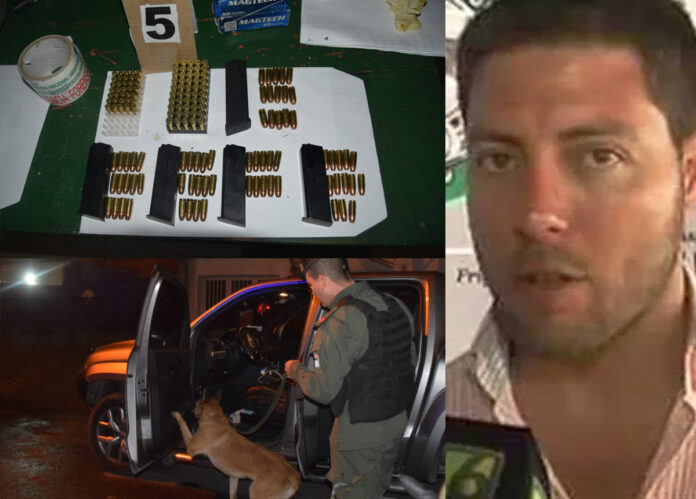 Al momento de requisar el vehículo, los gendarmes detectaron dos pistolas (una Browning y otra Glock) calibre 9 mm; 11 cargadores y 196 municiones (96 de calibre 9 mm, 65 calibre 40 y 35 calibre 32). También hallaron 360 dólares, 151.960 pesos, una balanza de precisión, medicamentos en tabletas y ampollas, seis jeringas con agujas y un gramo de cocaína, informó La Capital de Rosario.