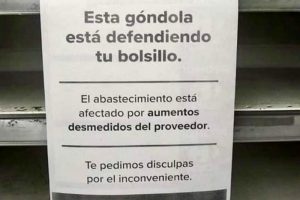 En las sucursales de Carrefour se puede leer un cartel que dice: “Esta góndola está defendiendo tu bolsillo. El abastecimiento está afectado por los aumentos desmedidos del proveedor. Te pedimos disculpas por el inconveniente”.