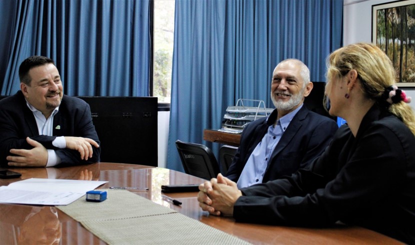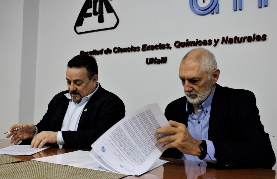 El decano de la FCEQyN, Doctor Dardo Marti rubricó un convenio específico con el titular de SMAUNaM, el Bioquímico Jorge López