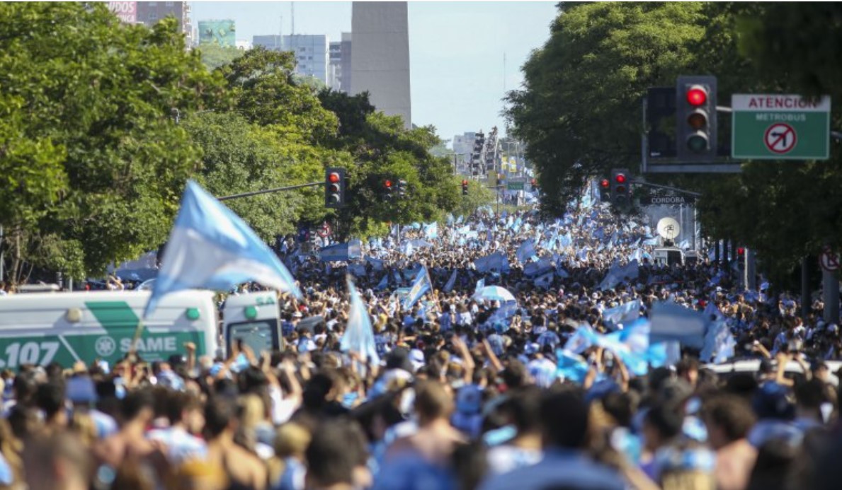 Sin embargo, desde las primeras horas de hoy una multitud espera la caravana albiceleste en el principal símbolo de los festejos argentinos.
