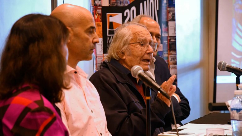 Artista, docente, defensor de los derechos humanos, Pérez Esquivel, a sus 92 años, inició la charla preguntando a los asistentes si se conocían entre sí y ante la respuesta obvia del no, los invitó a saludar al que tenían al lado. “¿Cómo vamos a cambiar el mundo si no nos conocemos; cómo vamos a hacer avanzar esta Argentina tan amada y castigada si no nos conocemos?”, desafió en el recinto de la sala Bioy Casares colmada de personas, con una gran asistencia de jóvenes, de la que también participó el periodista cultural Osvaldo Quiroga.