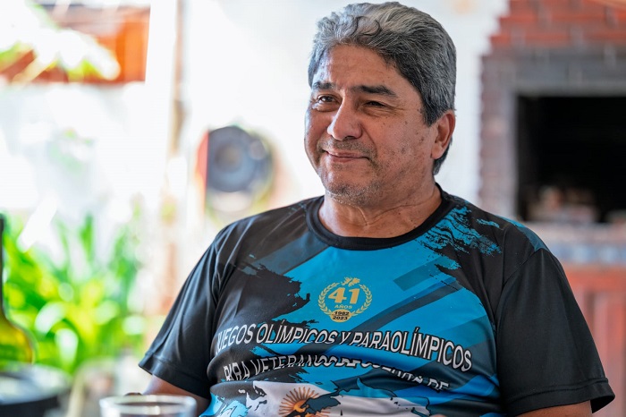 Oscar de la Cruz nació en Colonia Liebig (Corrientes), pero vive en Misiones hace décadas. Tenía 19 años cuando fue convocado a la guerra. “Yo entonces era aspirante a oficial de reserva en el Grupo de Artillería de Monte 3, de Paso de los Libres. Como tal, era técnico del Centro de Dirección de Tiro. No pude despedirme de mi familia. Un 9 de abril salimos en tren hacia Bahía Blanca sin saber a dónde íbamos. De allí volamos a Malvinas”, cuenta Oscar, quien durante la guerra se desempeñó en la asistencia técnica a los soldados encargados de disparar cañones con un alcance de hasta 16 kilómetros.