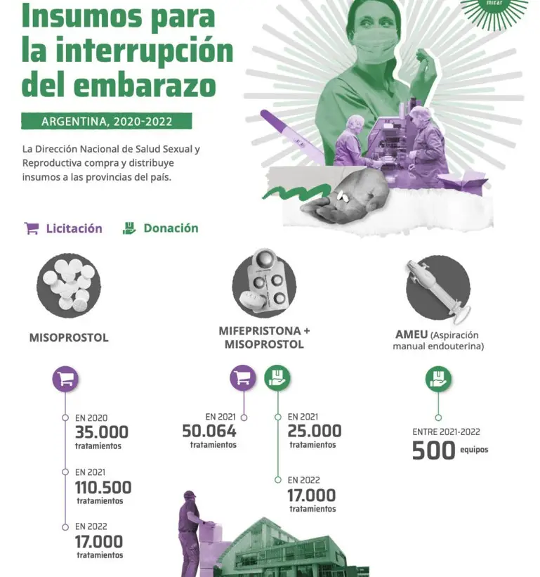 De acuerdo a cifras del proyecto Mirar, entre 2021 y el primer semestre de 2023 se distribuyeron 240.549 insumos para la IVE en todo el país y, de ese total, 42500 donaciones fueron gestionadas por las autoridades de salud. Fue en ese marco que se adquirieron 177.564 tratamientos de misoprostol y mifepristona, así como equipos para AMEU (Aspiración manual endouterina). Pero no hay plata para los derechos de las mujeres en este gobierno. Este medio se comunicó con el Ministerio de Salud, a cargo de Mario Russo, pero no respondieron a las consultas sobre la motosierra que pasa sobre los derechos de las personas con capacidad de gestar.