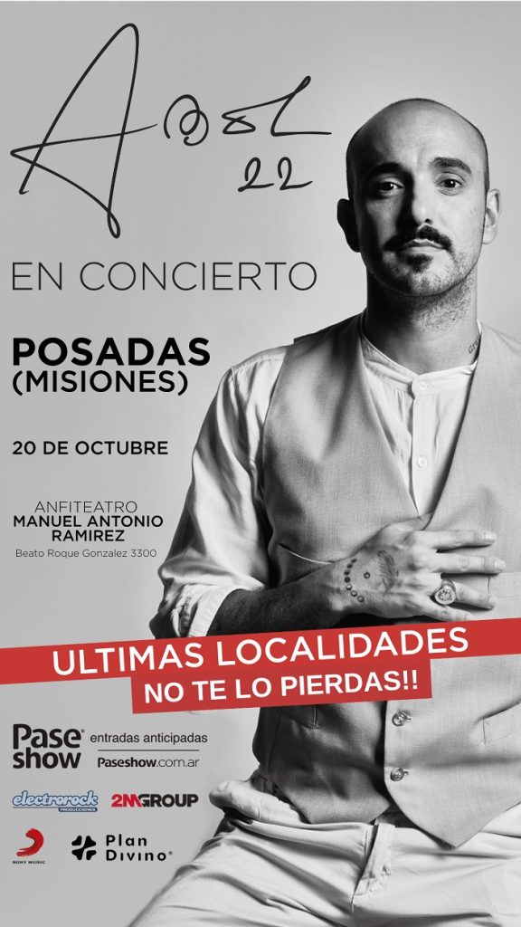 Abel regresa a la provincia el próximo jueves 20 de octubre a las 22:00 horas en el anfiteatro Manuel Antonio Ramírez (Beato Roque González 3300). La llegada del cantautor revolucionó la provincia de Misiones; en tiempo récord se agotaron las VIPS de los sectores A, B y C como así también las localidades Premium.